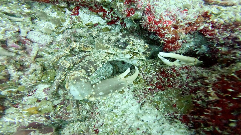 その他にも、巨大なカニやクイーンエンジェルフィッシュの幼魚などを見ることができました〜。