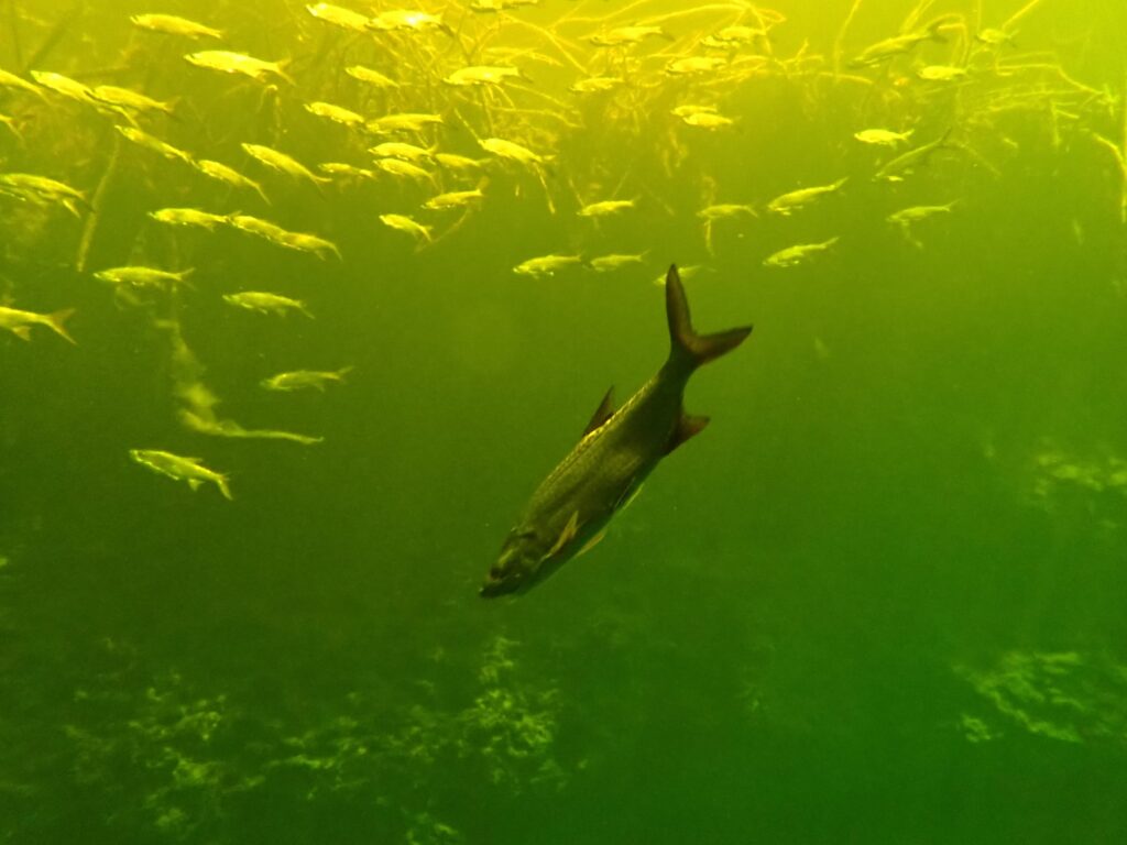 その海水の部分には、大きな古代魚ターポンがゆったりと泳いでいました。