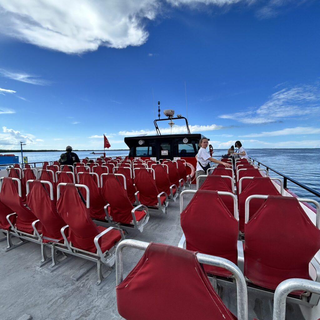 コスメル島行きのフェリーとは違い、大きな船ではありませんが、一応カタマラン(双胴船)なので揺れも少なく快適です。