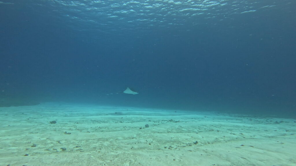子どものマンタくらいの迫力があり、日本で見慣れた個体よりひと回り以上大きい印象です。