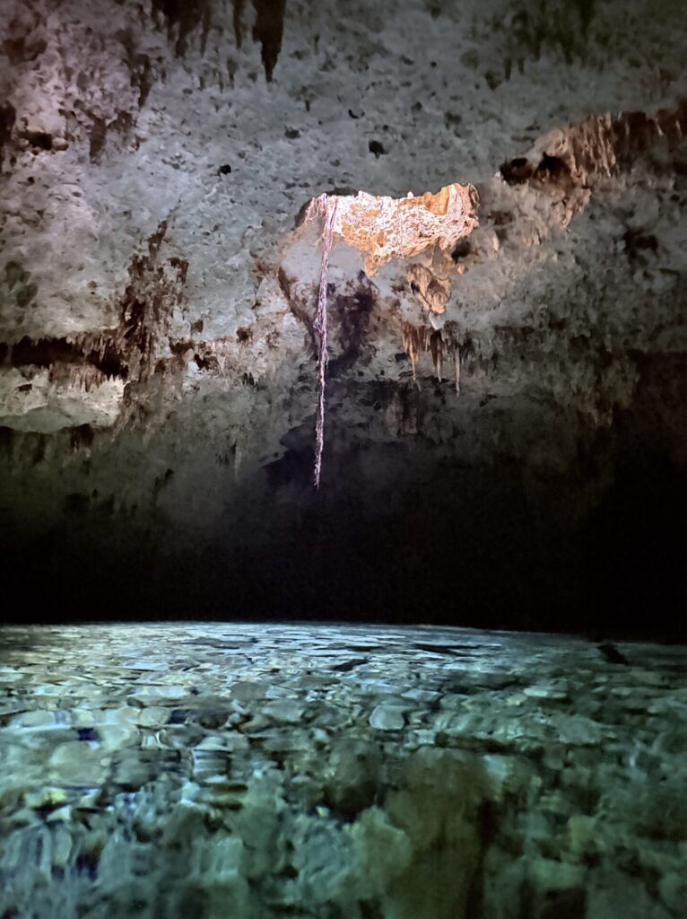 エントリー口には朝日が差し込み、透明度バツグンのセノーテが広がっています✨