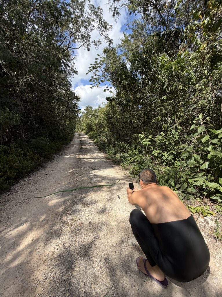 ゆっくり近づいてみると、なんと巨大…いや、めちゃくちゃ長い蛇でした!