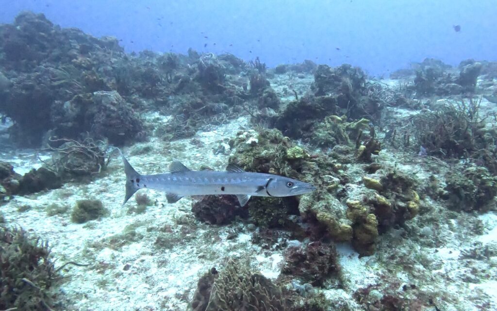 1本目は流れも弱く、のんびりドロップオフの地形に沿ってトンネルを通ったり、バラクーダを見たり。